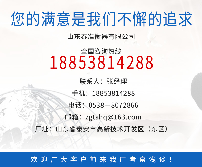 山东泰准衡器有限公司是一家集科研、开发、生产、销售和服务于一体的企业,公司严格执行ISO9001质量体系、ISO14001环境管理体系和OHSAS18001职工健康安全管理体系的标准,是泰安市专注生产衡器的公司...
